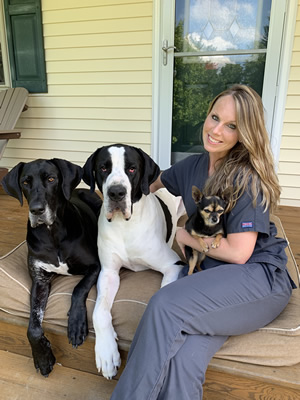Dawn grew up in Colonie, NY and graduated from SUNY Delhi in 2004 with a degree in Veterinary Technology. Dawn has been a Licensed Veterinary Technician for the past 16 years, beginning her career right out of College. Dawn leads our surgical team and is an extremely skilled anesthesiologist. When Dawn is not in surgery, she particularly enjoys ultrasonography. Dawn and her husband live in Schoharie, NY with their 3 fur kids; “Lily”, a feisty but loveable Chihuahua, “Charlotte”, a beautiful Great Dane Mix and “Earl”, their goofy Great Dane.